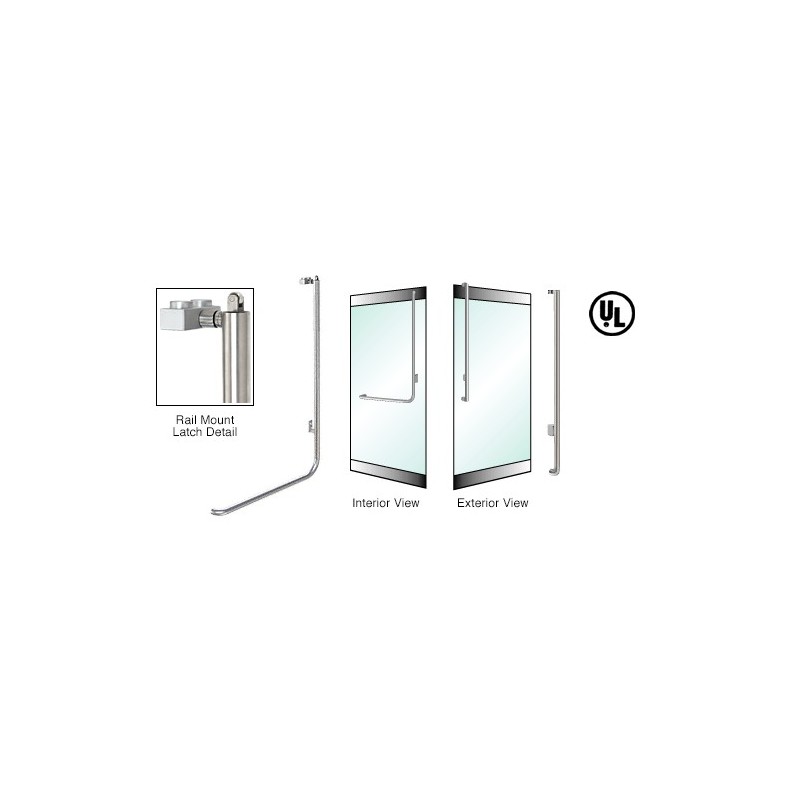 PA100J3RPBS CRL Poigne de porte extrieure, modle J, antipanique, inverse, plaque de retenue, verrouillage en haut, fixation sur profil de porte battante, ct droit, acier inoxydable bross