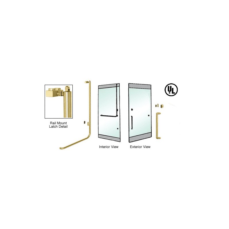 PA100Y3RKPB CRL Poigne antipanique de porte extrieure, modle Y, inverse, accs par cl, verrouillage en haut, fixation sur profil de porte battante, ct droit, laiton satin