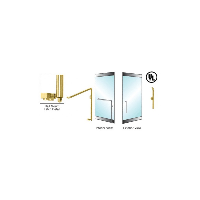 PA110P3RKPB CRL Poigne antipanique de porte extrieure, modle P, inverse, accs par cl, verrouillage en bas, fixation sur profil de porte battante, ct droit, laiton satin