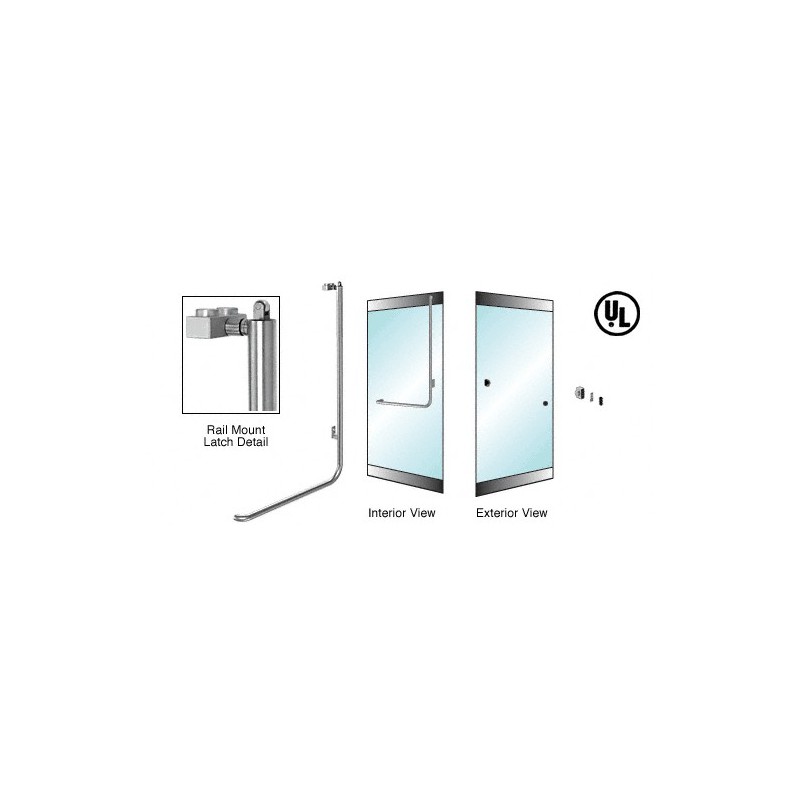 3P100Z3RPBS CRL Poigne de porte extrieure pour verre de 19,1 mm (3/4 po), modle Z, antipanique, inverse, sans cylindre, verrouillage en haut, fixation sur profil de porte battante, ct droit, acier inoxydable bross