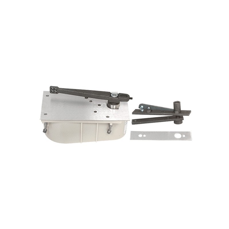 Ce ferme-porte au sol à suspension centrale de la série CRL Rixson 28 est doté d'une mécanique irréprochable pour une commande optimale de la porte. Le poids de la porte est supporté par le bras inférieur, directement relié à l'axe du ferme-porte au sol. La relation directe entre le bras inférieur et l'axe du ferme-porte au sol augmente considérablement l'efficacité de fermeture par rapport aux ferme-portes encastrés ou en applique. Ce ferme-porte est capable de supporter des portes intérieures ou extérieures n'excédant pas 158 kg (350 lb) et 1,22 m (48 po) de large. Comprend par défaut le sélecteur de retenue, une butée fixe positive intégrée et des soupapes indépendantes pour le réglage de la fermeture, du verrouillage et du frein à l'ouverture. Les éléments suivants sont fournis pour finaliser l'installation : 253000, Boîte de scellement pour ferme-portes au sol 284720LH, Plaque de recouvrement de ferme-porte 282026, Bras inférieur, suspension centrale 340, Pivot supérieur, suspension centrale Finis et accessoires supplémentaires disponibles sur demande de devis.
