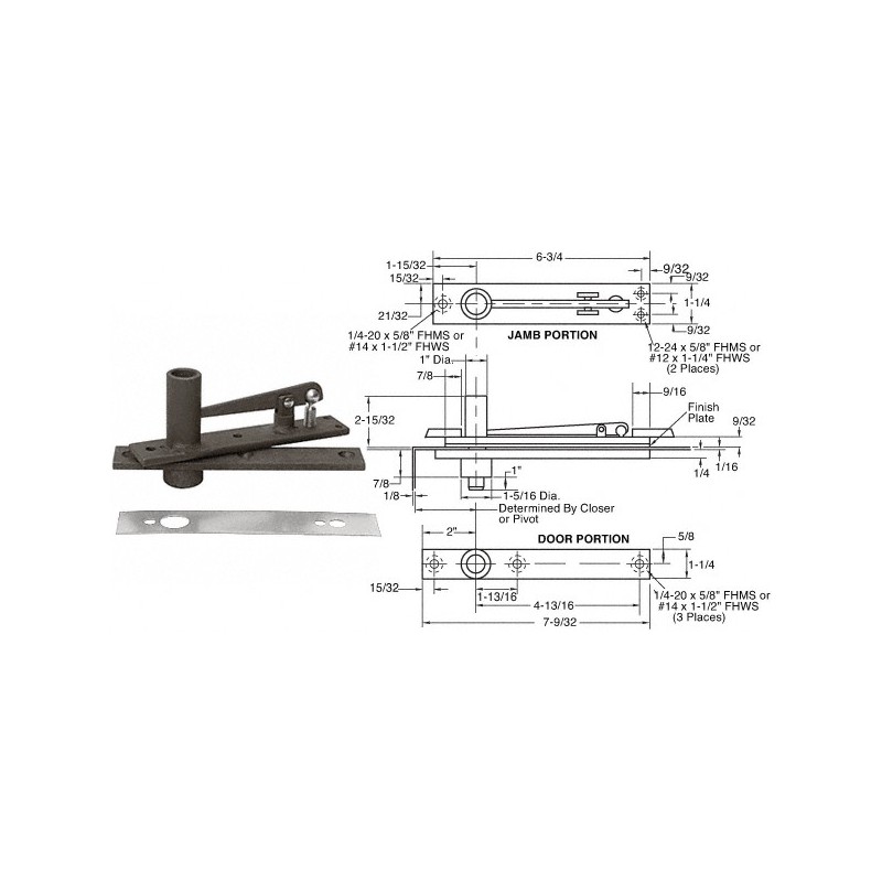 H345DU Rixson Heavy-Duty Long Pivot Pin Center-Hung Top Pivot with Dark Bronze Cover Plate