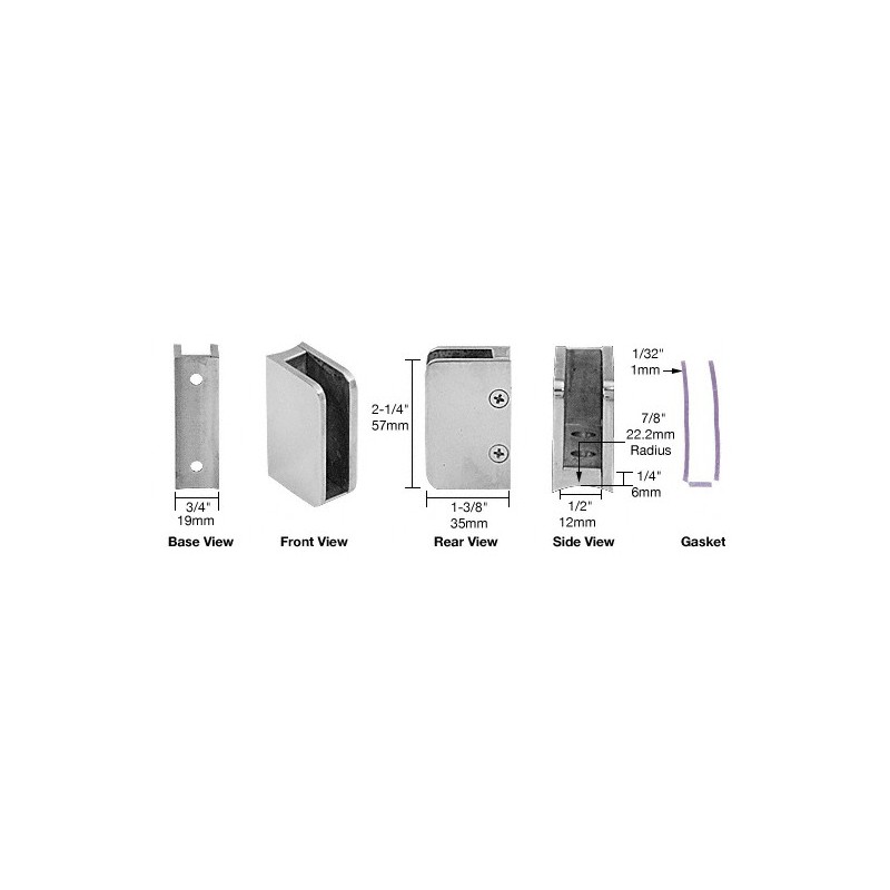 Pour verre de 9,5 mm (3/8 po) d'épaisseur • Disponible dans des finis laiton poli, acier inoxydable brossé et acier inoxydable poli