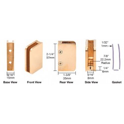 Pour verre de 6,3 mm (1/4 po) d'épaisseur Disponible dans des finis laiton poli, acier inoxydable brossé et acier inoxydable poli