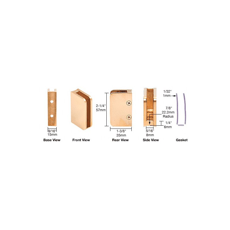 Les pinces à verre CRL sont utilisées sur les poteaux de cloisons et les pare-haleine afin de soutenir le verre. Elles peuvent se fixer sur les tubes à l'aide des vis de montage fournies. Un support latéral fixé par deux vis se dépose facilement pour permettre la mise en place du verre. Les joints transparents fournis font office de coussinets entre le verre et les pinces métalliques.